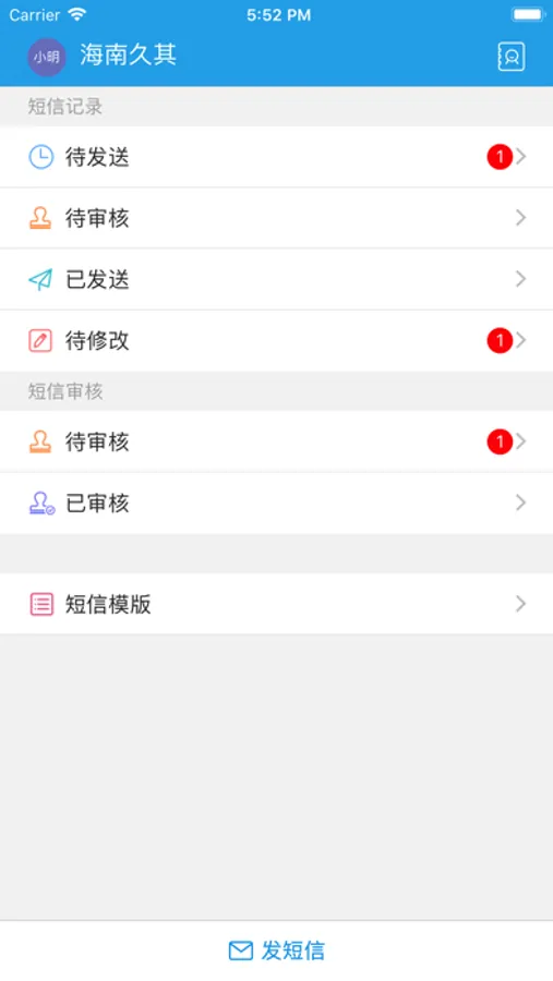 短信共享中心是一个通过短信进行消息通知的平台,包含了发短信、查看短信记录、短信审核、短信模版、通讯录等功能。