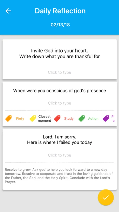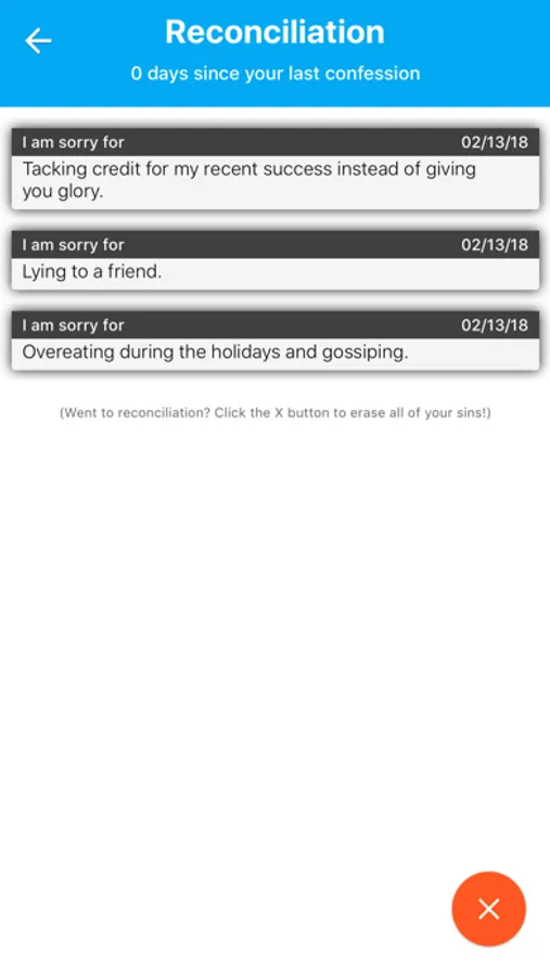 Use our daily reflection feature to keep track of your sins. Tracks how many days since your last confession. Examination of conscious included in the app. Information is password and PIN protected.