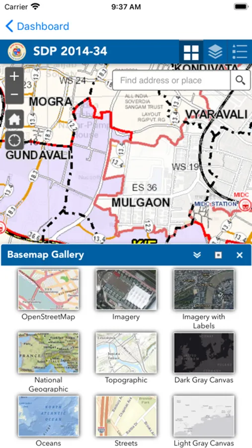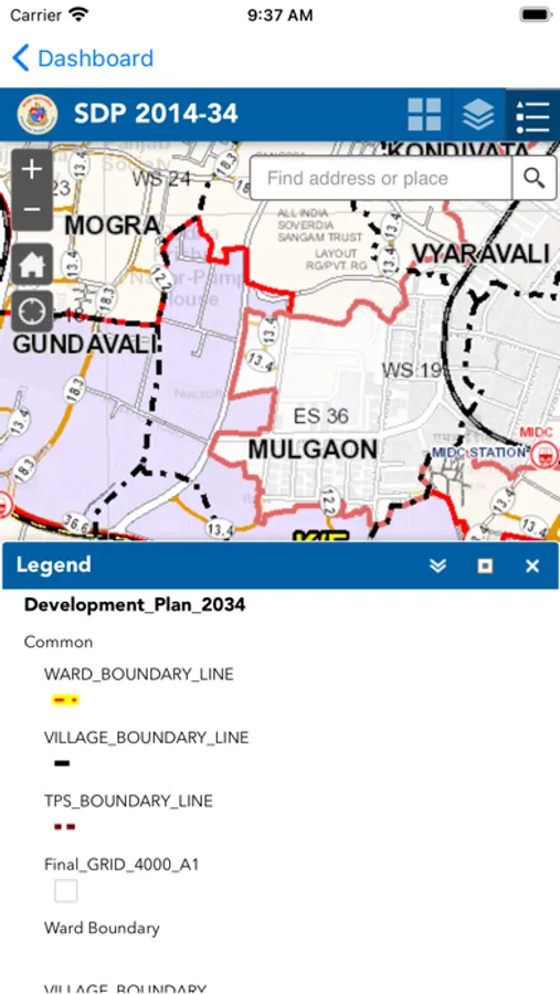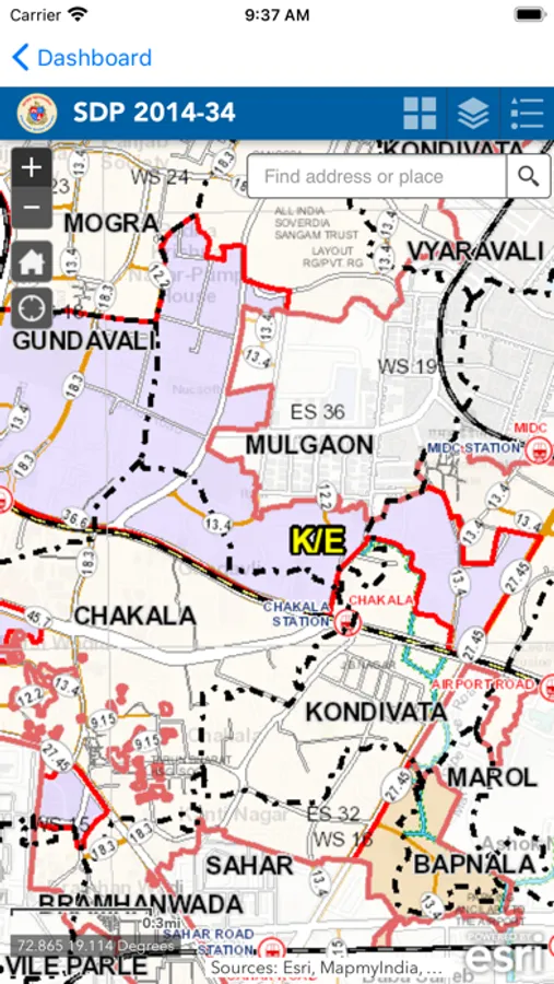 MCGM GIS based mobile application provides information about Reservations in Sanctioned Development Plan 1991 and Draft Development Plan 2034.