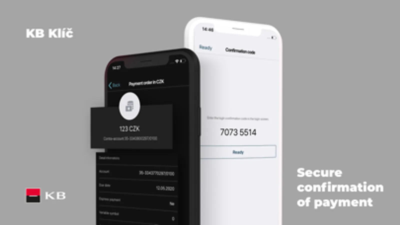The KB Klíč app verifies your identity and safely logs you into MojeBanka online banking and Komerční banka's other online apps. You don't have to enter a texted code and you also authorise payments through the app.