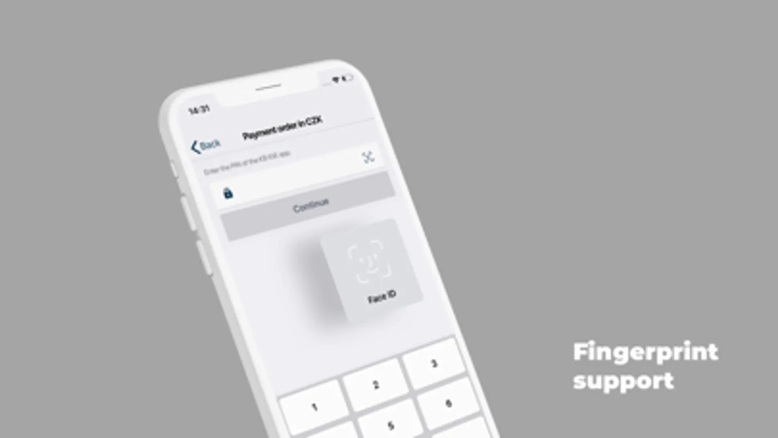Set the PIN on the occasion of activation. You can set up your fingerprint if your phone supports them. Komerční banka will never see your fingerprints; they are retained in a secure repository in the phone.