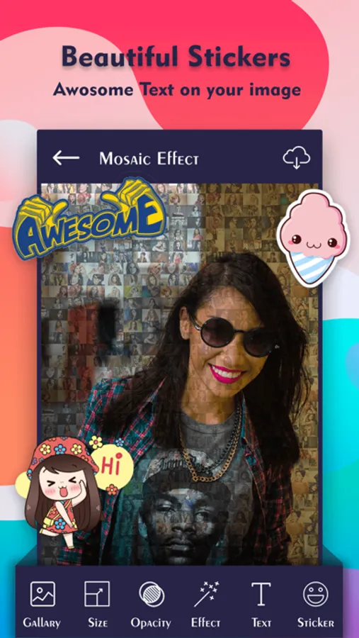 Mosaic photo collage is provides really wonderful mosaic collage filters with unique way into your favourite photo and you can edit your picture with our powerful photo making tool. Mosaic Photo maker gives you an awesome way to create unique mosaic photo effect which you will get only with the professional designer.