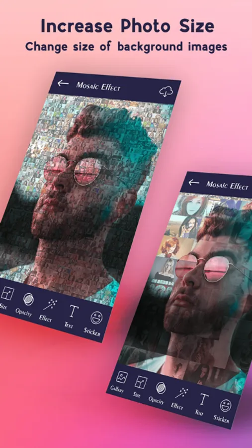 Mosaic Photo Creator is convert your photos into an Art. you can make a Mosaic Photo just in some few steps. This Mosaic Making app makes high quality mosaic photo collage.