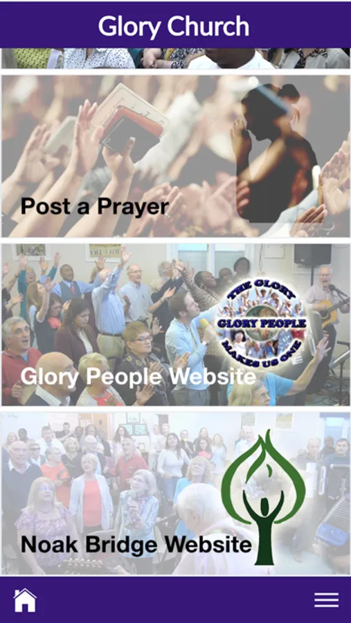 Welcome to the Glory Church App for the Noak Bridge Christian Centre and the Glory People Country Wide Evangelical Outreach. We seek to have a positive impact both in Basildon and the Country as we travel to share the good news of the Gospel of Jesus.