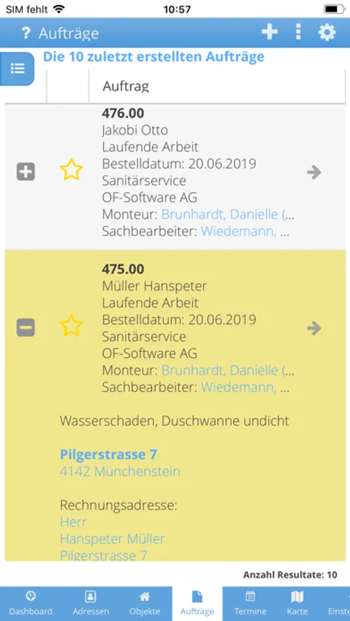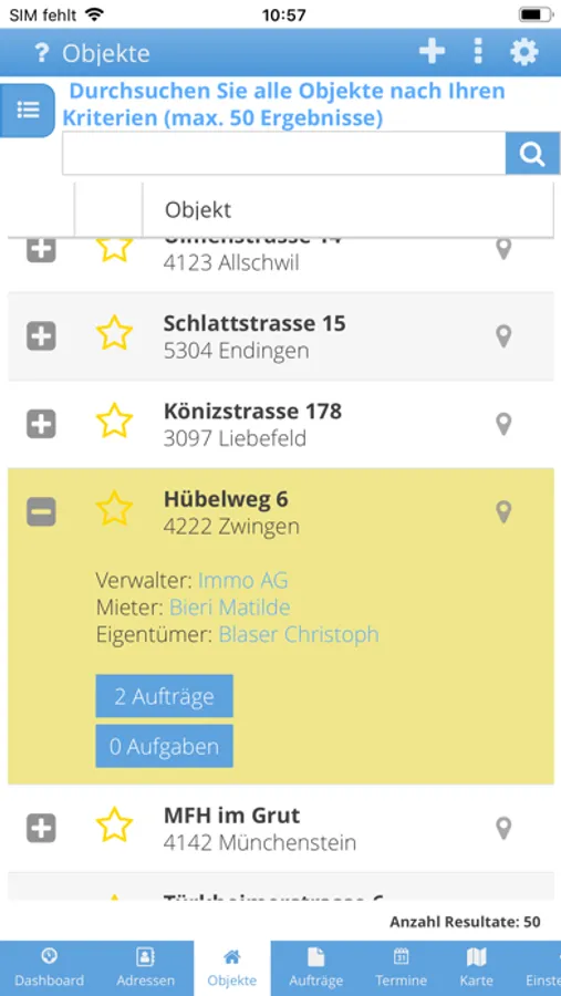- Aufträge und die entsprechenden Bauobjekte