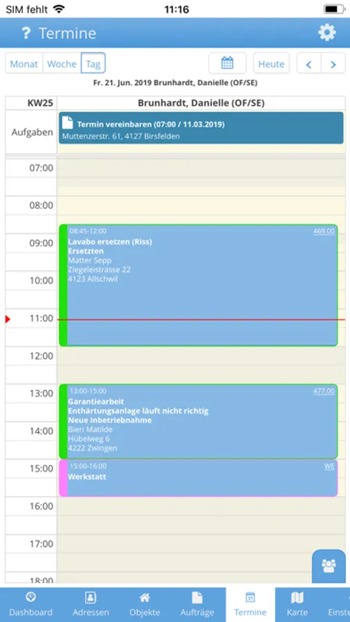 Verwalten Sie mit OF mobile Termine: