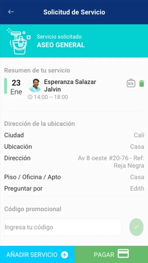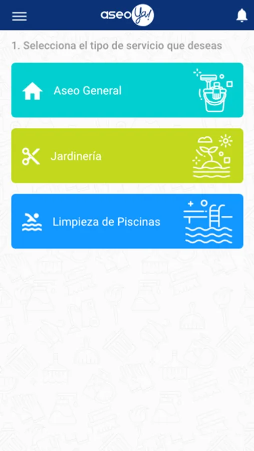 - Elegir el servicio que necesitas: Aseo (empleadas domesticas o en aseo para oficinas), Jardinería o Mantenimiento de Piscinas).