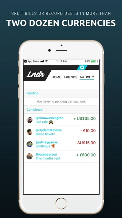That's it! Lndr is the fastest, safest and most secure way to settle small debts and share expenses with your friends and family. Try Lndr today – and be sure to let us know what you think!