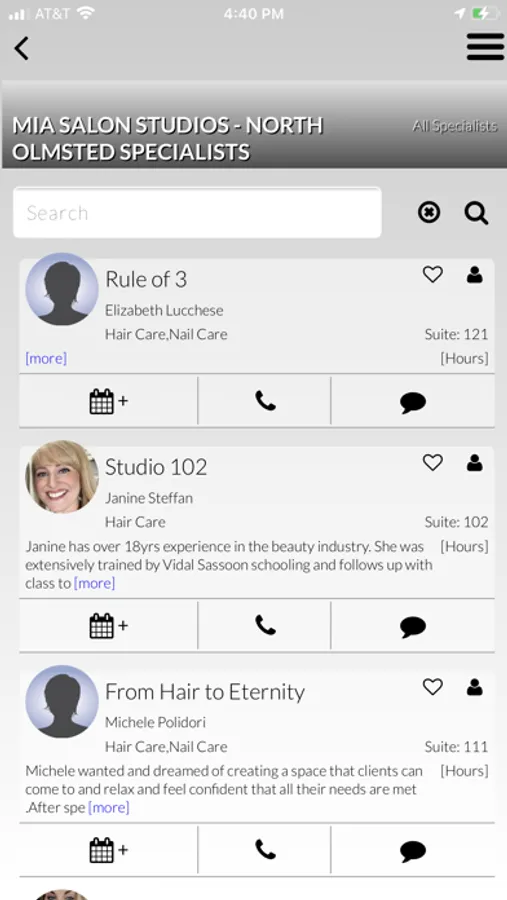The Mia Salon Studios mobile app is for clients of tenant businesses to book appointments, communicate, confirm and pay for hair, nail, and massage services provided by the business owners that reside in a location.