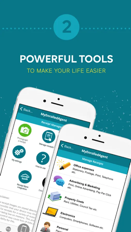 Say goodbye to paper receipts, our App allows you to photograph your originals, quickly categorise them and export them in a spreadsheet format, ready to send to your enrolled agent whenever suits you. Never again will you have to worry about losing a receipt or taking up valuable office space with piles of paper.