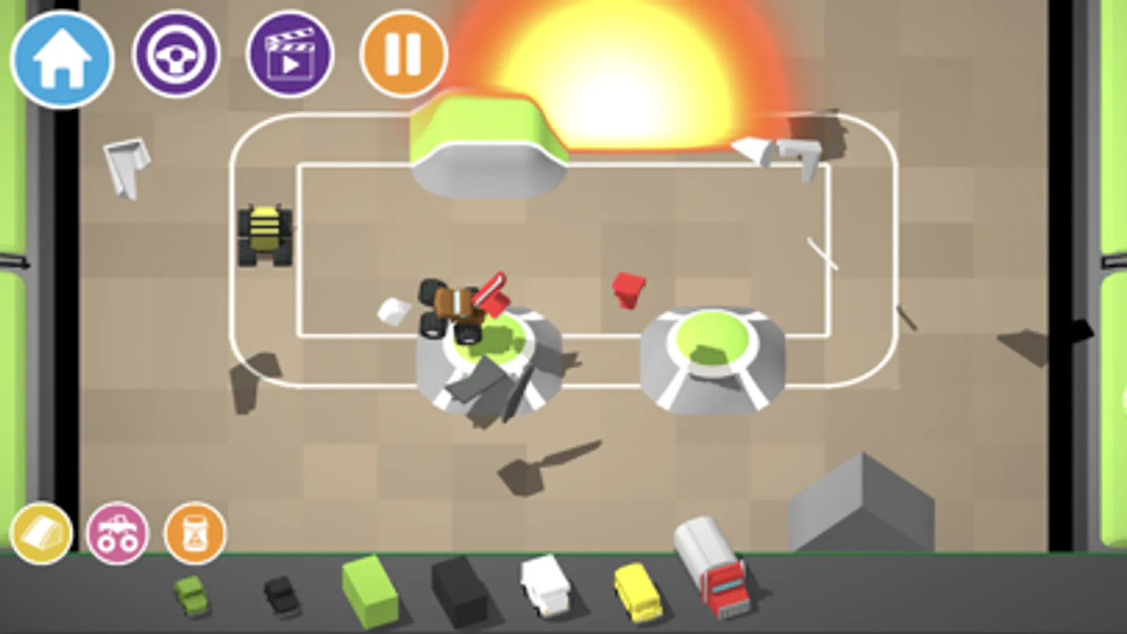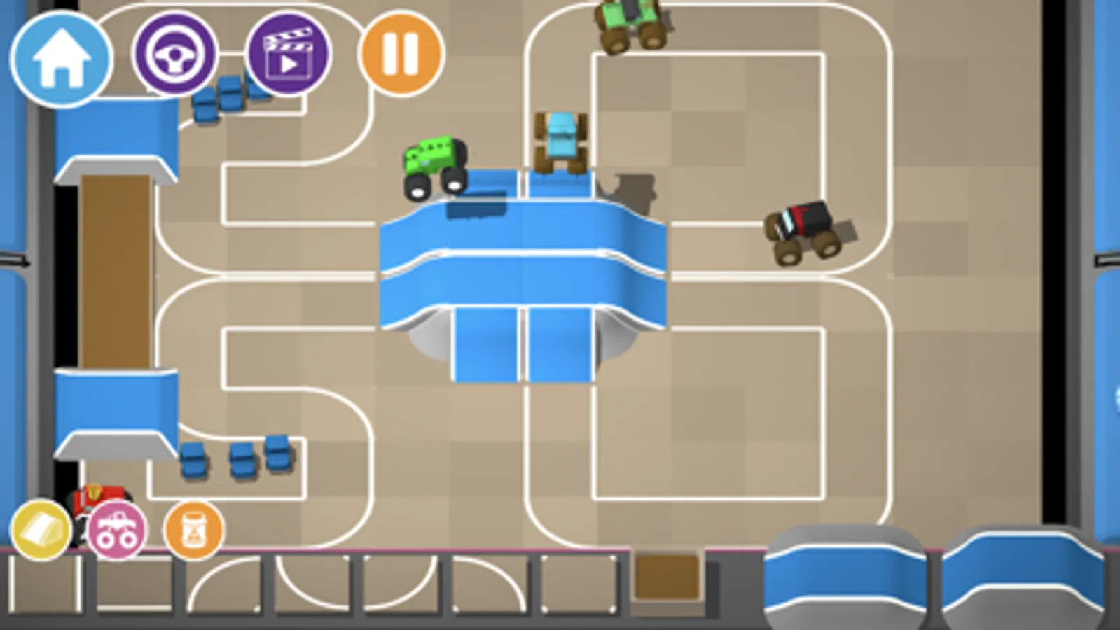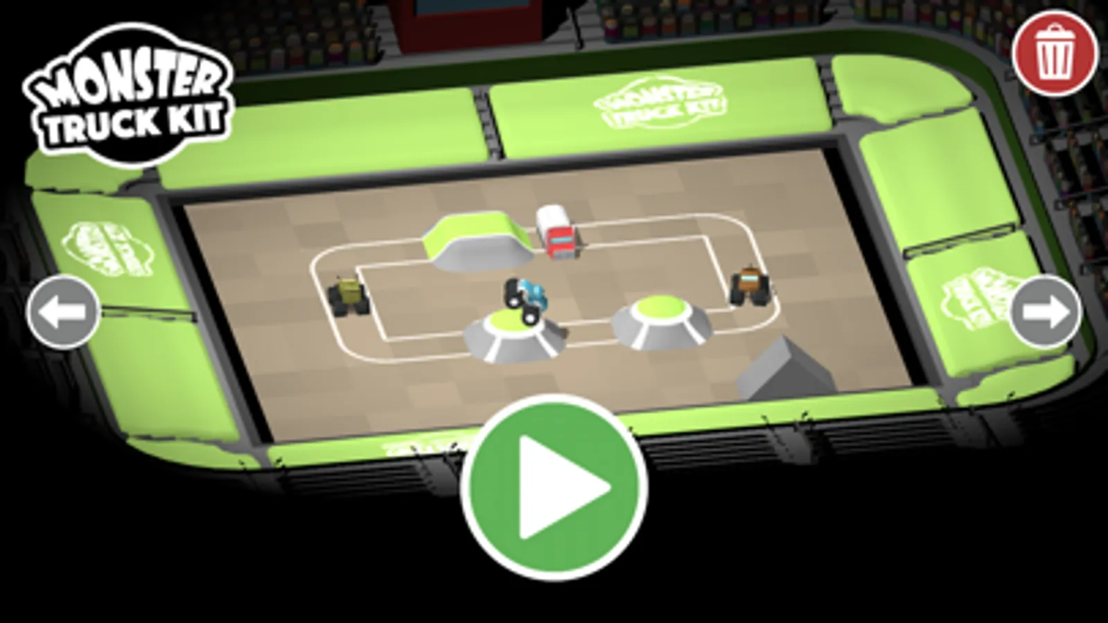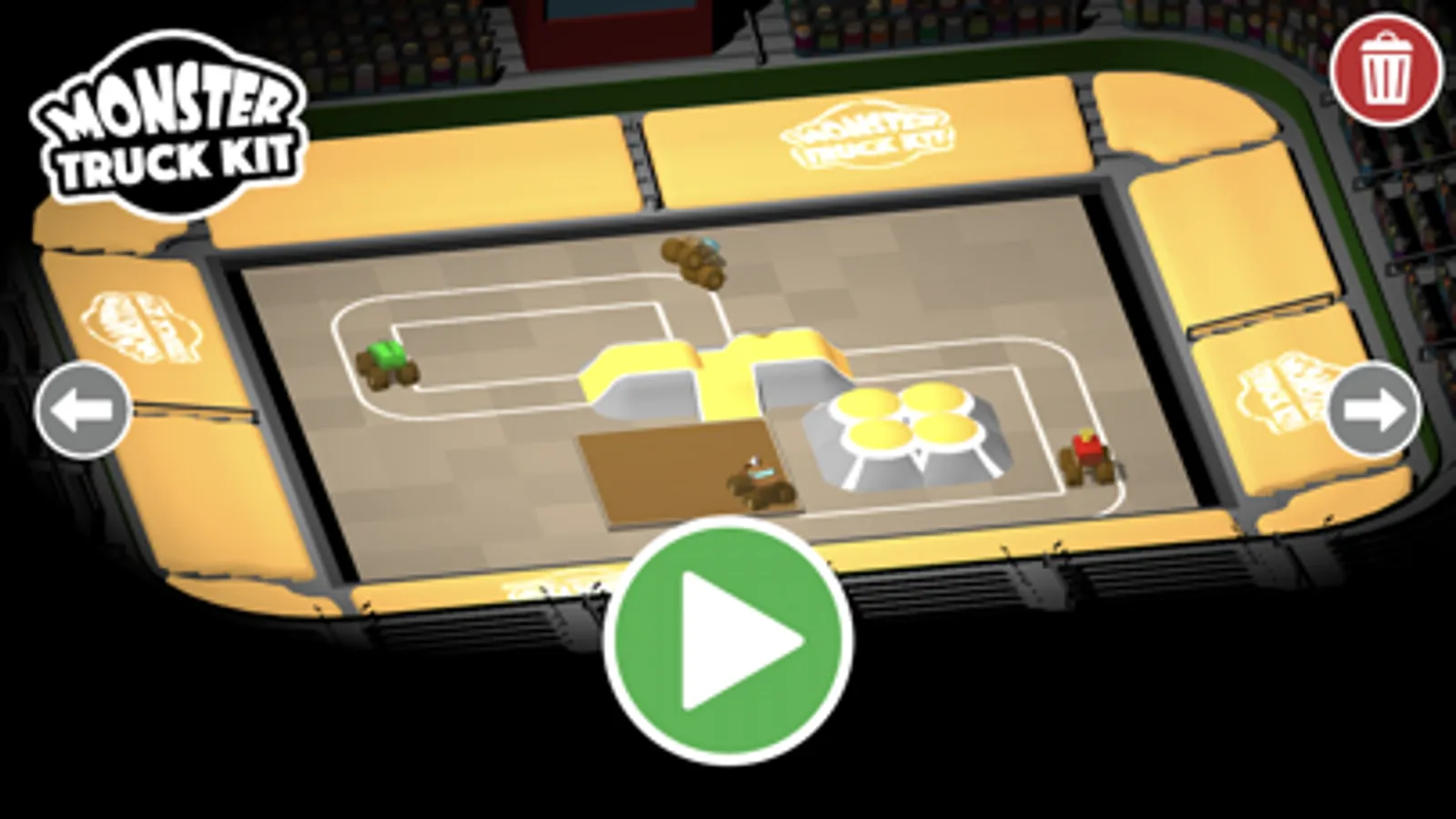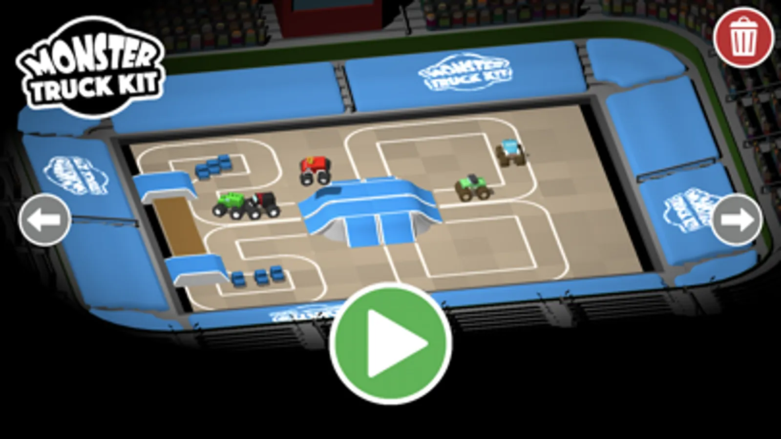 Build a figure of eight track and watch your trucks smash into each other. Add some mud pits to get your trucks dirty!