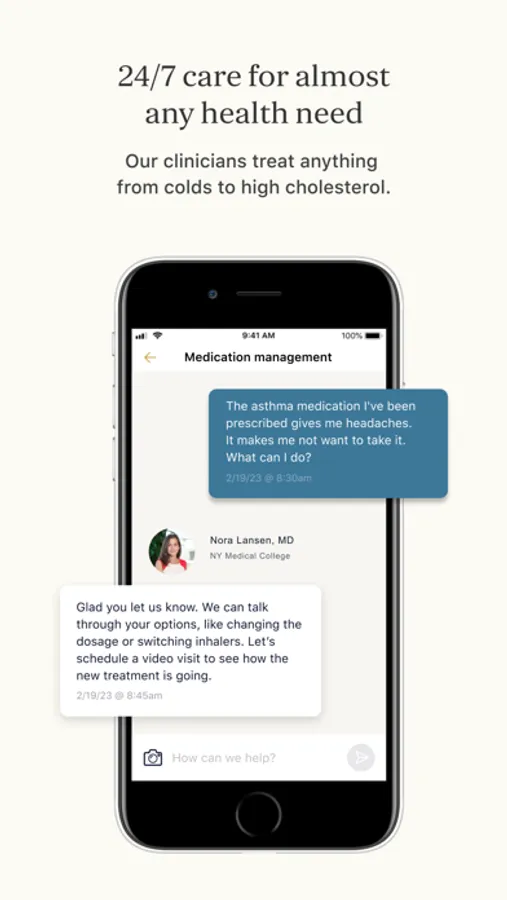 Get 24/7 health care on your phone anytime and anywhere you need it, no appointment or insurance necessary. Text with real doctors about your symptoms and get care for almost any health issue, from the mundane to the mysterious.