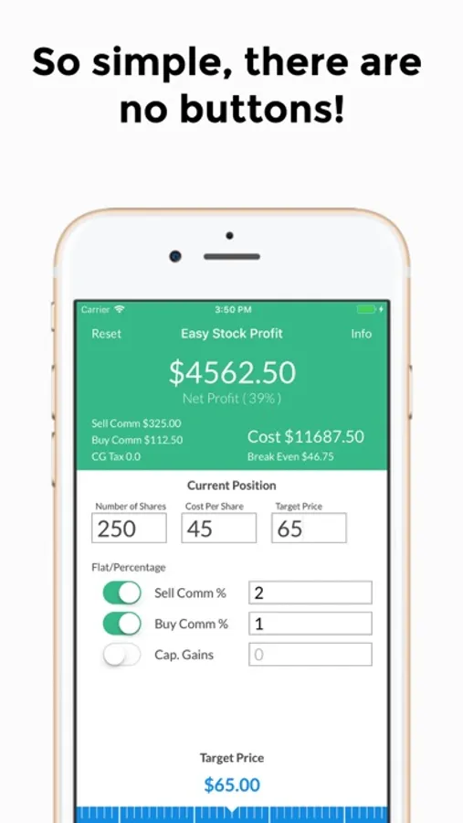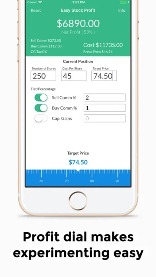 Groundbreaking Feature: The "Price Dial" is an amazing tool that can be found nowhere else. Simply swipe your finger to the left or right to "dial-in" the target price and watch all the numbers and calculations update instantly! Once you use it, you'll never go back.