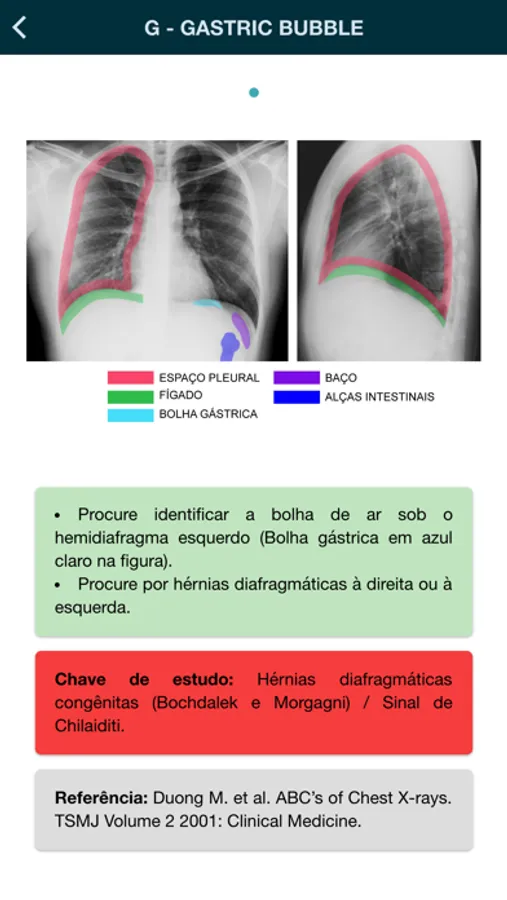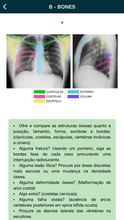 In this application I present to you the method of evaluation of chest radiographs used and perfected by Professor Dr. Paulo Cezar Leal Ecclissato, who has been taught for several years at the Residency of Radiology and Diagnostic Imaging of the Faculty of Medicine of Marília - FAMEMA .