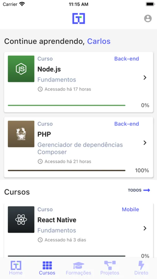 Com o aplicativo do TreinaWeb, você pode estudar onde e quando quiser, seja online ou offline.