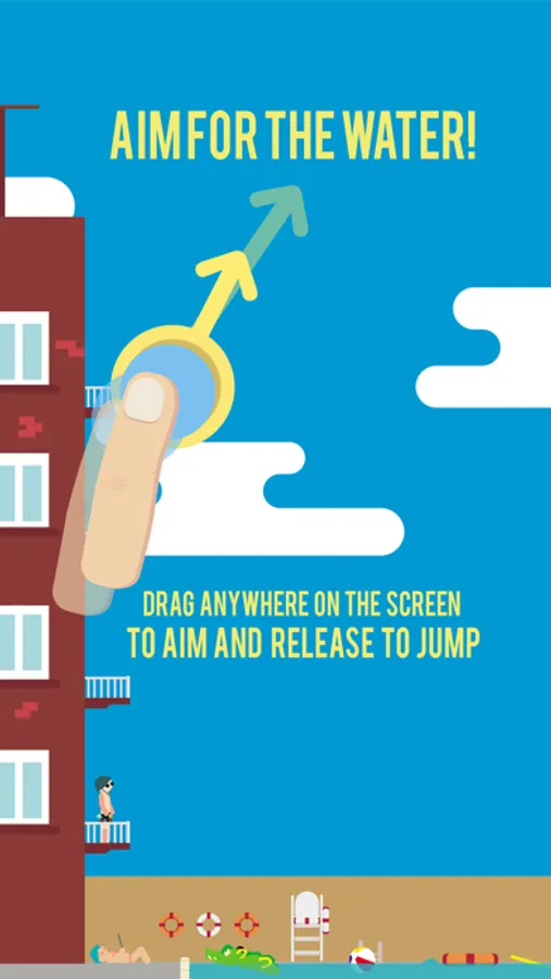Slides your finger making a straight line that will determine the angle and the power of the jump. Aim well and arrive at the pool!