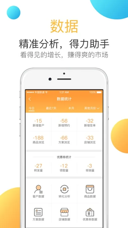 具备客户管理、预约管理、销售管理、优惠券管理、分享获客、业务数据统计分析等功能。