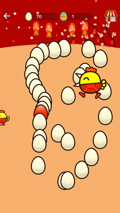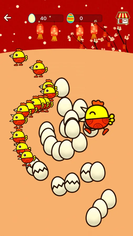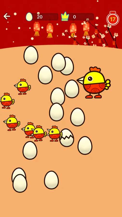 When you play Happy Chicken to celebrate the new year, you'll find that your chicken may lay eggs with beautiful patterns. It's a super power only new year chickens have! Little happy chicks will be hatched from the eggs!
