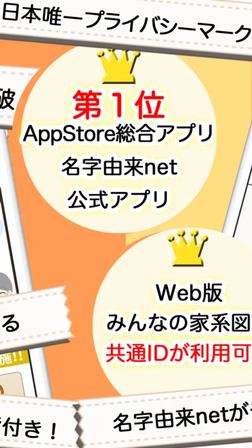 家系図アプリは、家系図取扱業として唯一のプライバシーマーク取得企業が運営しておりますので、安心・安全にご利用いただけます。
