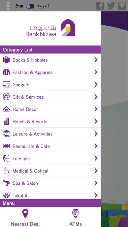 Bank Nizwa Offers application to discover the best deals across all categories on your favourite stores. Be it restaurants, travel, hotels, holidays, electronics, lifestyle, enjoy exclusive deals & offers using your Bank Nizwa cards and save more.