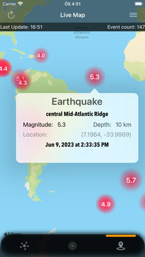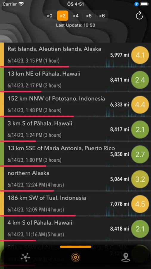 - Distance indication: The application also displays the distance between the user and the earthquakes, providing valuable information about their proximity.