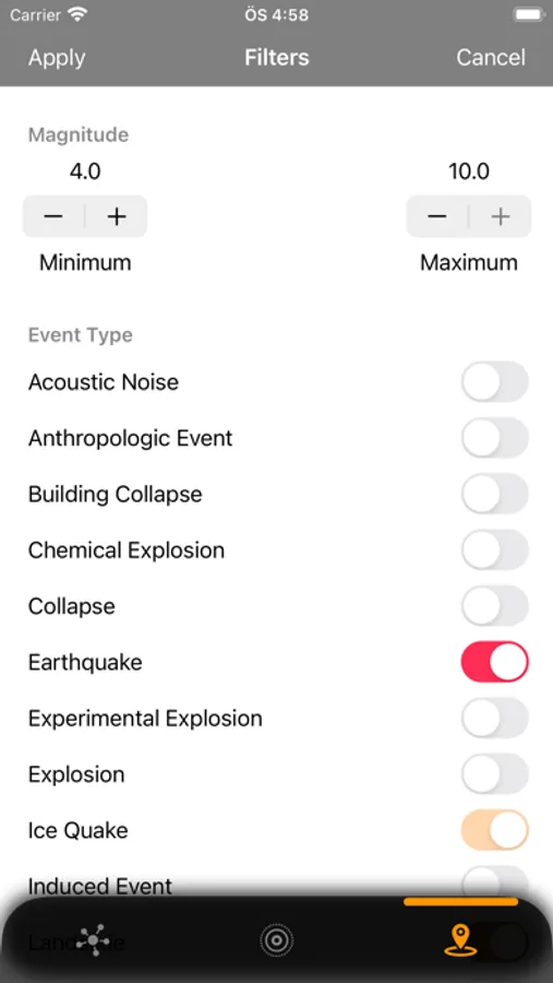 - Custom filters: Set personalized filters to receive earthquake alerts based on magnitude.