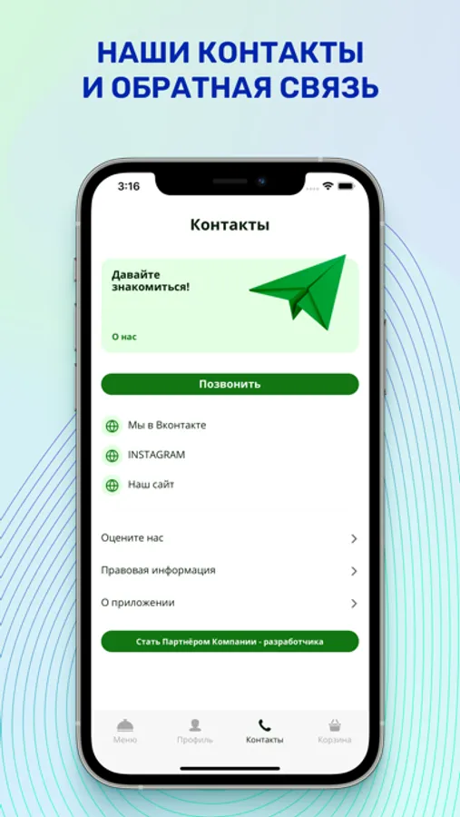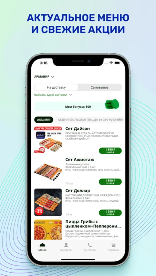 - Актуальное меню, вкусные описания и аппетитные фото;