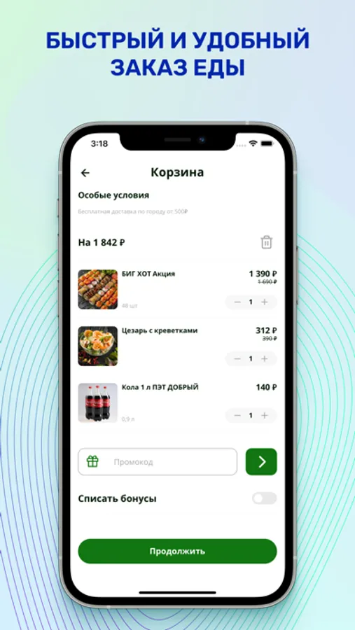 Мобильное приложение ЭкоРолл — это новый удобный способ заказать еду из любимого кафе. В приложении доступны: