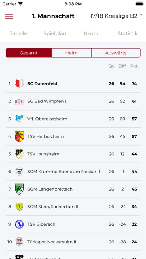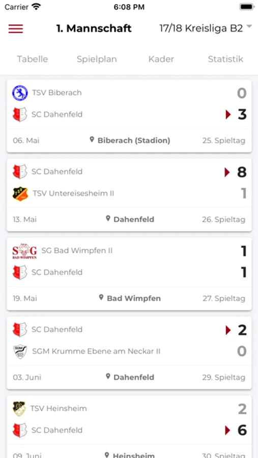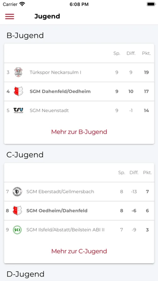• Einfacher und übersichtlicher Zugang zu den aktuellsten News rund um den SC Dahenfeld