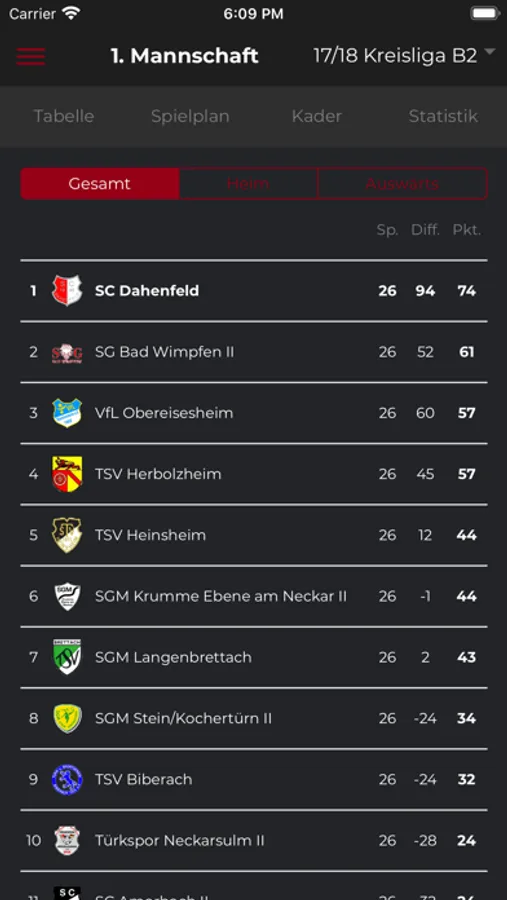 • Umfangreiche Informationen zu allen Spielen der Fußballabteilung