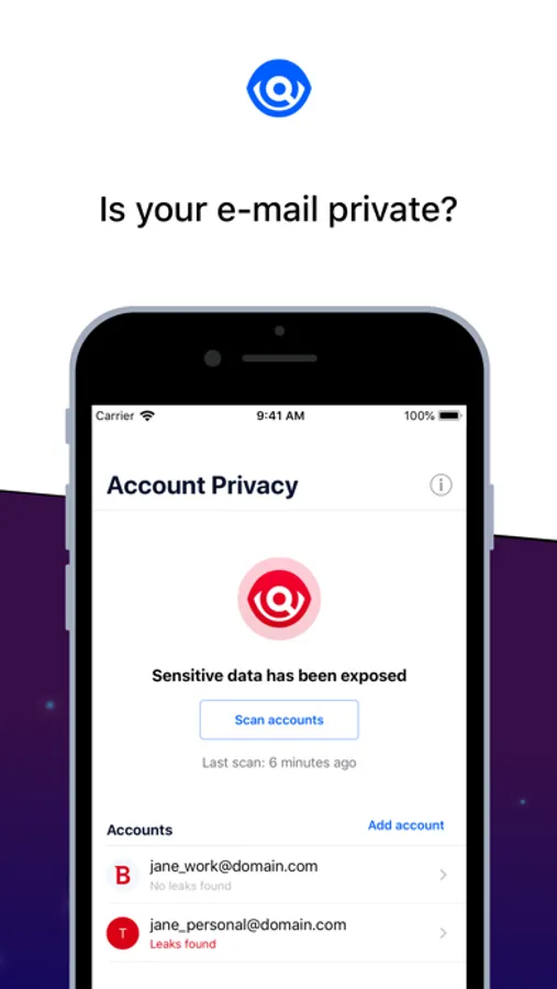 Find out whether your email accounts have been leaked. Is your account still private? Simply validate your email address with the app and Bitdefender for NETGEAR Armor will run a check to discover if your privacy has been breached and let you know if it’s time to change passwords.