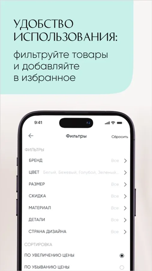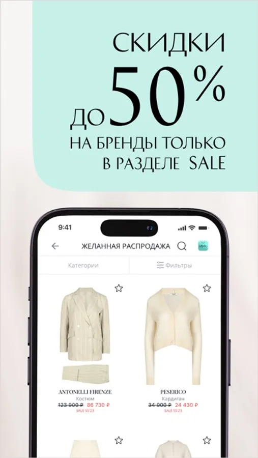 Разноплановый выбор модных моделей: легкие летние и теплые зимние, трикотажные и шерстяные, спортивные или классические костюмы во всех возможных цветовых вариациях. С помощью фильтров легко найти то, что нужно. Функциональный интерфейс позволяет сохранить историю просмотров, отложить понравившуюся вещь в «избранное» и отследить статус и местоположение покупки.