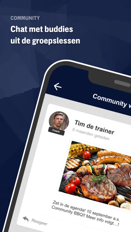 - Houd je trainingprogressies bij en volg je trainingbuddies.