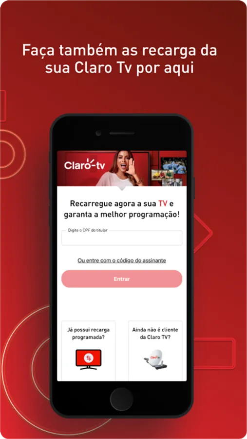 • Fazer recargas para sua Claro TV.