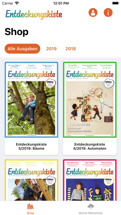 Sie können die Ausgaben der „Entdeckungskiste“ wahlweise für jeweils 13,99€ als InApp-Kauf erwerben oder mit einem Abo auf alle Ausgaben zugreifen. Mehr Informationen zum Abo finden Sie hier: https://abo.entdeckungskiste.de