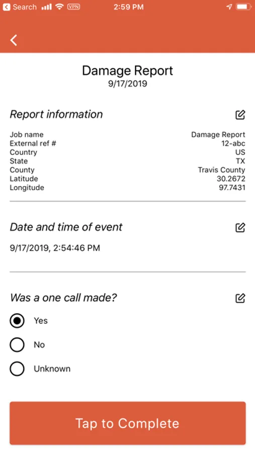 • In-app links to 811 notification centers – both telephone and web – by state.