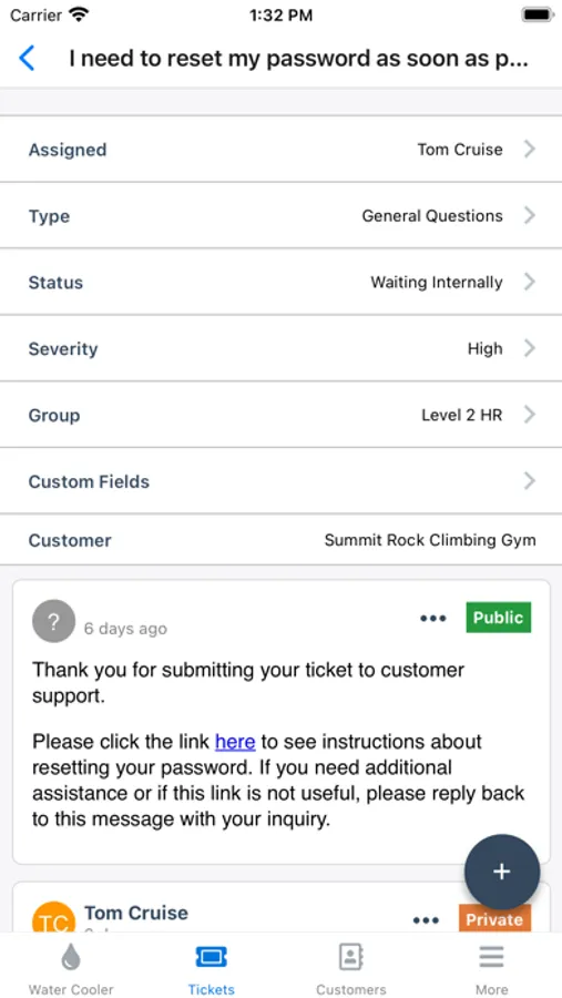 * Add public (customer-facing) or private (internal-facing) actions to tickets