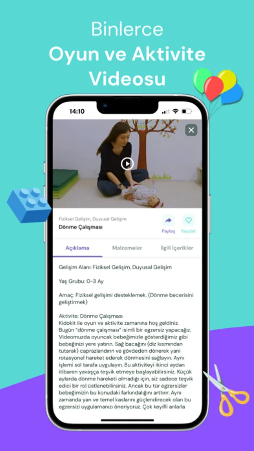 Ebeveynleri, bebek gelişimi ve çocuk bakımı ile ilgilenen herkesi eğitmeyi, bilinçlendirmeyi hedefleyen Kidokit’i indirin. Siz de çocuk gelişimi için sağlam bir temel oluşturun!