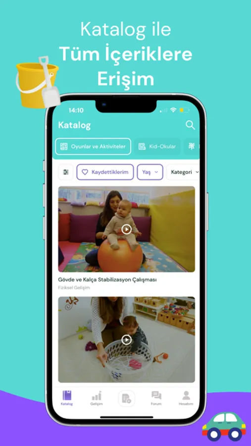 • Farklı gelişim basamakları için hazırlanmış hem eğlenceli, hem de eğitici çocuk oyun ve aktivite videoları.