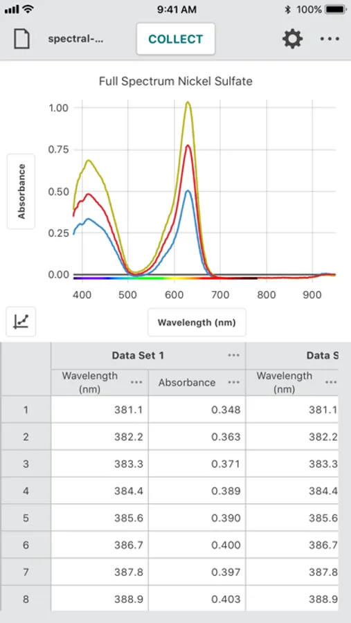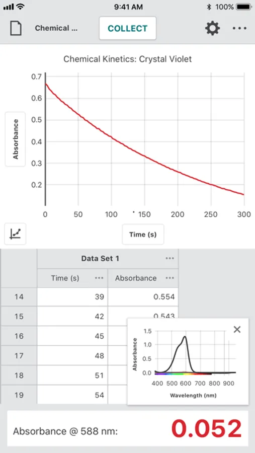 Our free Spectral Analysis app makes it easy to incorporate spectroscopy into your biology and chemistry labs. Using the app, students can collect a full spectrum and explore topics such as Beer’s law, enzyme kinetics, and plant pigments.