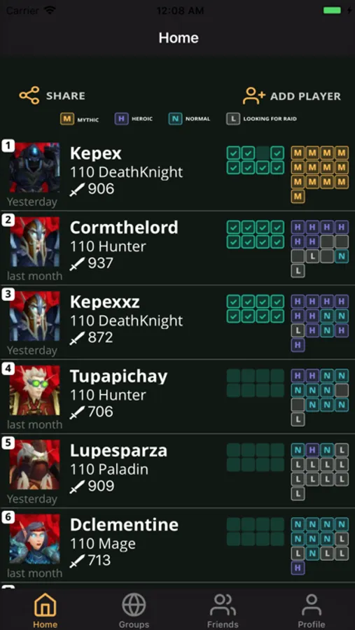 Track your raid and mythic dungeon progression and compete with your friends creating your groups and leaderboards