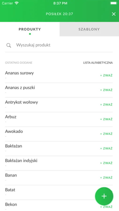 • Funkcja w wyszukiwarce „szablony”, dzięki której zważenie całego posiłku składającego się nawet z wielu produktów może potrwać mniej niż minutę.