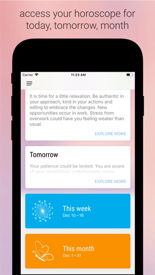 Access your horoscope right from your phone. This application provides horoscope for today or tomorrow and even for the current week and the whole month. It is available for free download.