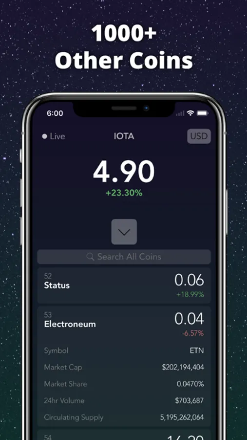 Sift through 1000+ other coins to see how IOTA stacks up in the rankings. Coins are ranked by their market cap live. Watch as they change position and move up and down the feed. New coins are added as soon as they appear on an exchange.