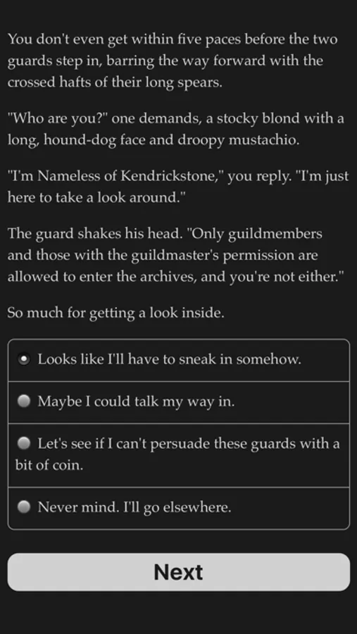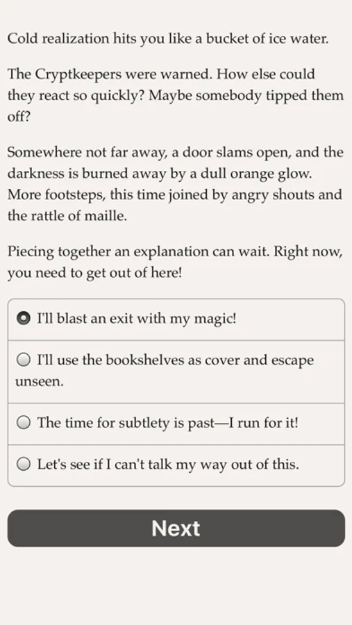 “Cryptkeepers of Hallowford” is a 360,000 word interactive fantasy novel by Paul Wang, where your choices control the story. It's entirely text-based—without graphics or sound effects—and fueled by the vast, unstoppable power of your imagination.