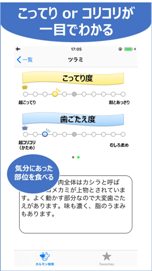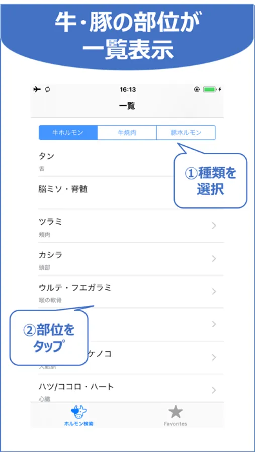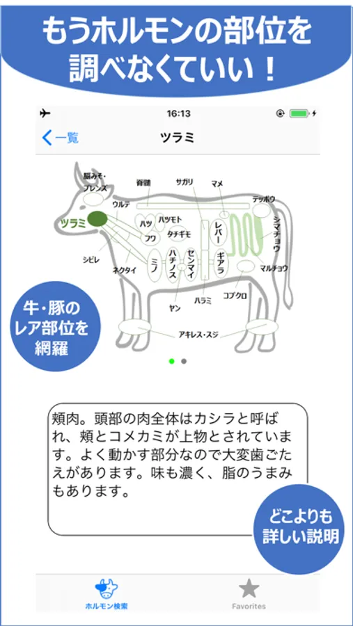 焼肉やホルモンを食べに行った時に、「これってどこの部位だっけ?こってりしてるのかな」と思ったことはありませんか?そんな時もこのアプリさえ開けば安心です!