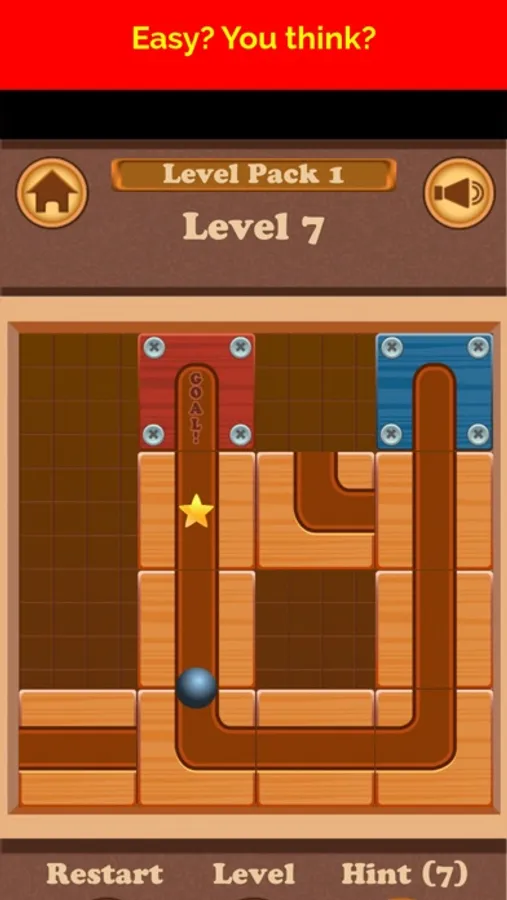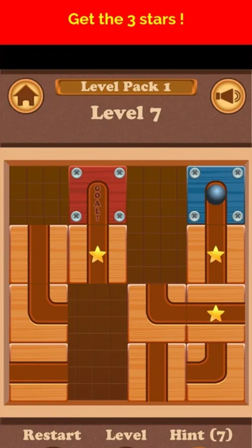 Move the blocks with your finger to create a path for moving the ball to the red GOAL block. But riveted blocks can't be moved. Are you ready to play?