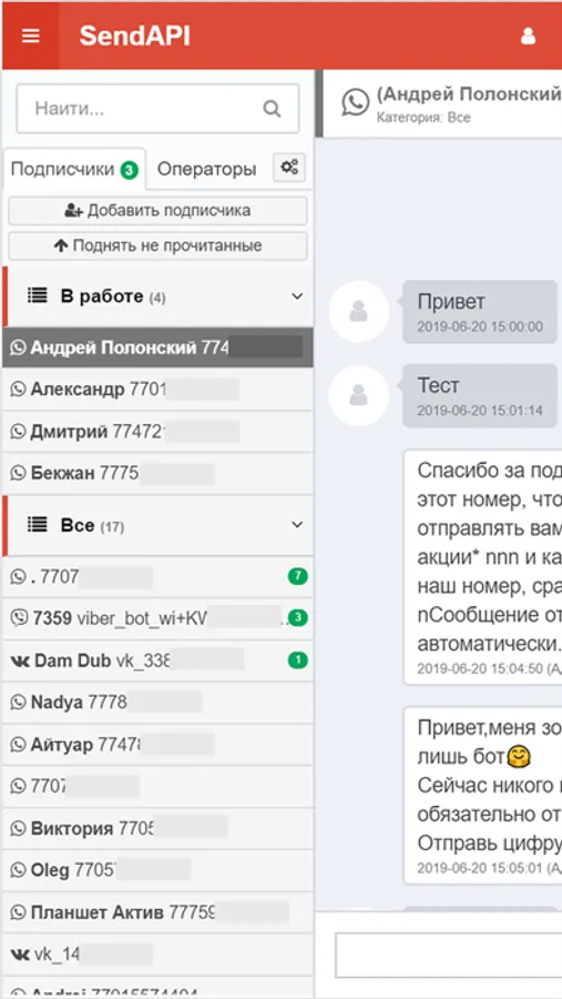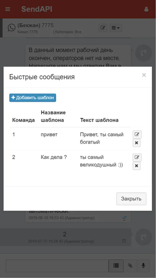 Чат для работы call-центра, позволяет принимать и отправлять сообщения клиентам, которые пишут через WhatsApp, Facebook, Vk, Telegram, Instagram или через чат с сайта.