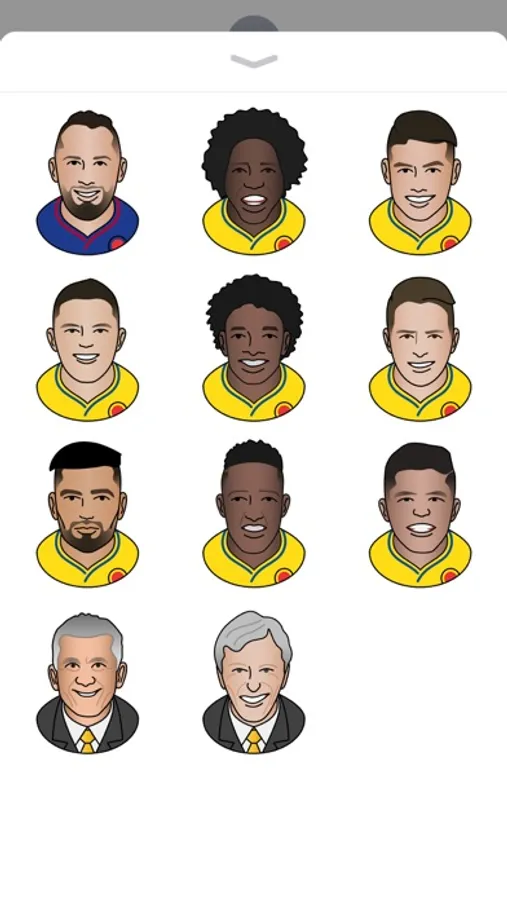 Selección Colombia Stickers para iOS mensajes (iPhone y iPad) incluye una variedad de 11 stickers cuidadosamente ilustrados e inspirados en los jugadores convocados a la selección colombiana de fútbol de mayores.