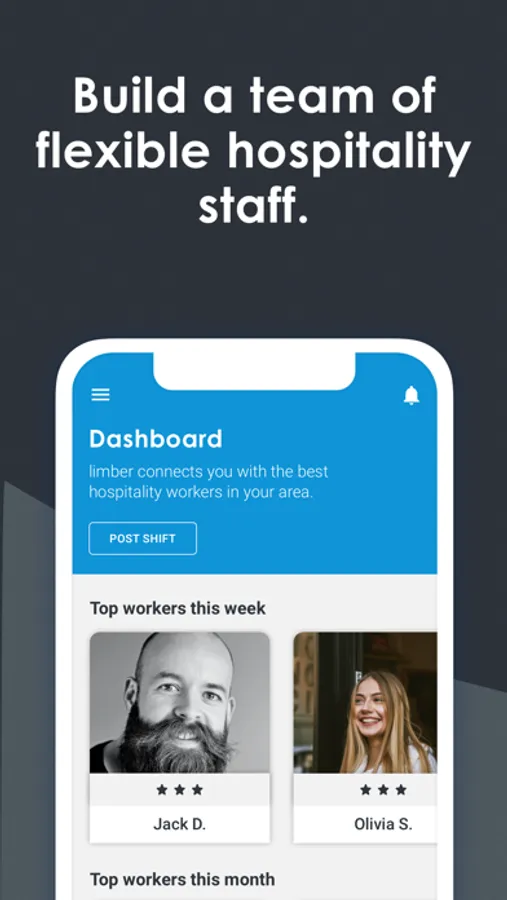 limber connects you with the best hospitality workers in your area. The app allows you to browse CVs with a difference – all containing ratings from other local businesses. On limber, you can cover shifts, staff events or find your next permanent hire.